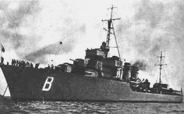 During days 24-29.VIII.1932 Burza, together with Wicher and squadron of submarines visited Stockholm. During next years Burza visited Leningrad (on 24-28.VII.1934), Copenhagen (7-9.VIII.1934), Cologne (26-29.VI.1935), Helsinki (7-10.VII.1935), Tallinn (17-20.VII.1935), all together with Wicher. In 1937 Burza took part in the coronation parade in Spithead (Britain) and in July the identification sign was removed. On 2.I.1938 new commander was appointed lt. cmdr. Stanislaw Nahorski. On 30.VIII.1939 according to plan 'Peking' Burza with Blyskawica and Grom, left Polish waters and sailed to England, which they reached day later on 1.IX.1939. Two days later Burza, with other destroyers, was moved to Rosyth, where she received tactical number H 73.