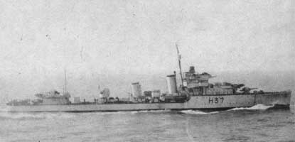 In December 1943 Garland was moved to Freetown, from which ship was escorting convoy from West Africa. In April 1944 ship was moved to Gibraltar and later to the Mediterranean. In August Garland was assigned to the "Force A". On 18.IX.1944, on 7pm, Garland spotted enemy U-boat and attacked it, but without any result. Later four British destroyers (flagship Troubridge, Brecon, Terpsichore and Zetland) joined Polish destroyer and started the hunting which lasted for 10 hours!! On 6am the U-boat surfaced and was spotted again by Polish destroyer, this time the attack was deadly. German U-boat U 407 (749 T) was sunk in position 36'27N/24'33O, with 5 hands lost. The rest of the crew, 48 sailors with commander lt. Hans Kolbus, was picked up by Garland as war prisoners. When ship reached Alexandria on 20.IX.1944, was welcomed by British admiral with message: "U-407 sunk. Long live Poland!". In October 1944 Garland took part in Operation Manna (landing near Athens).